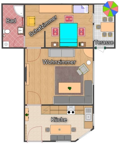 Größe: 70m² + 10m² Sonnenterrasse mit Markise